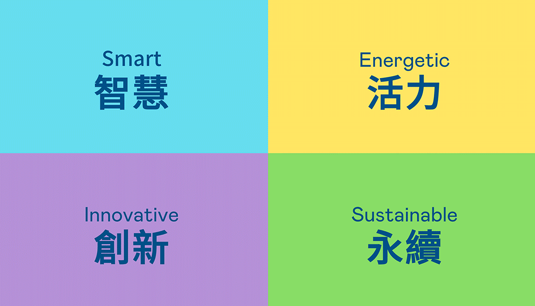 | 從穩重、信賴的CG电子藍開創新色彩,注入象徵智慧藍、活力黃、創新紫、永續綠的品牌色及動態多變的幾何圖形,呼應不設限的「Possibilities」精神,代表多元的專業技術及領域,在碰撞中相互觸動、融合、延伸,持續激盪出更多新的可能性。 |